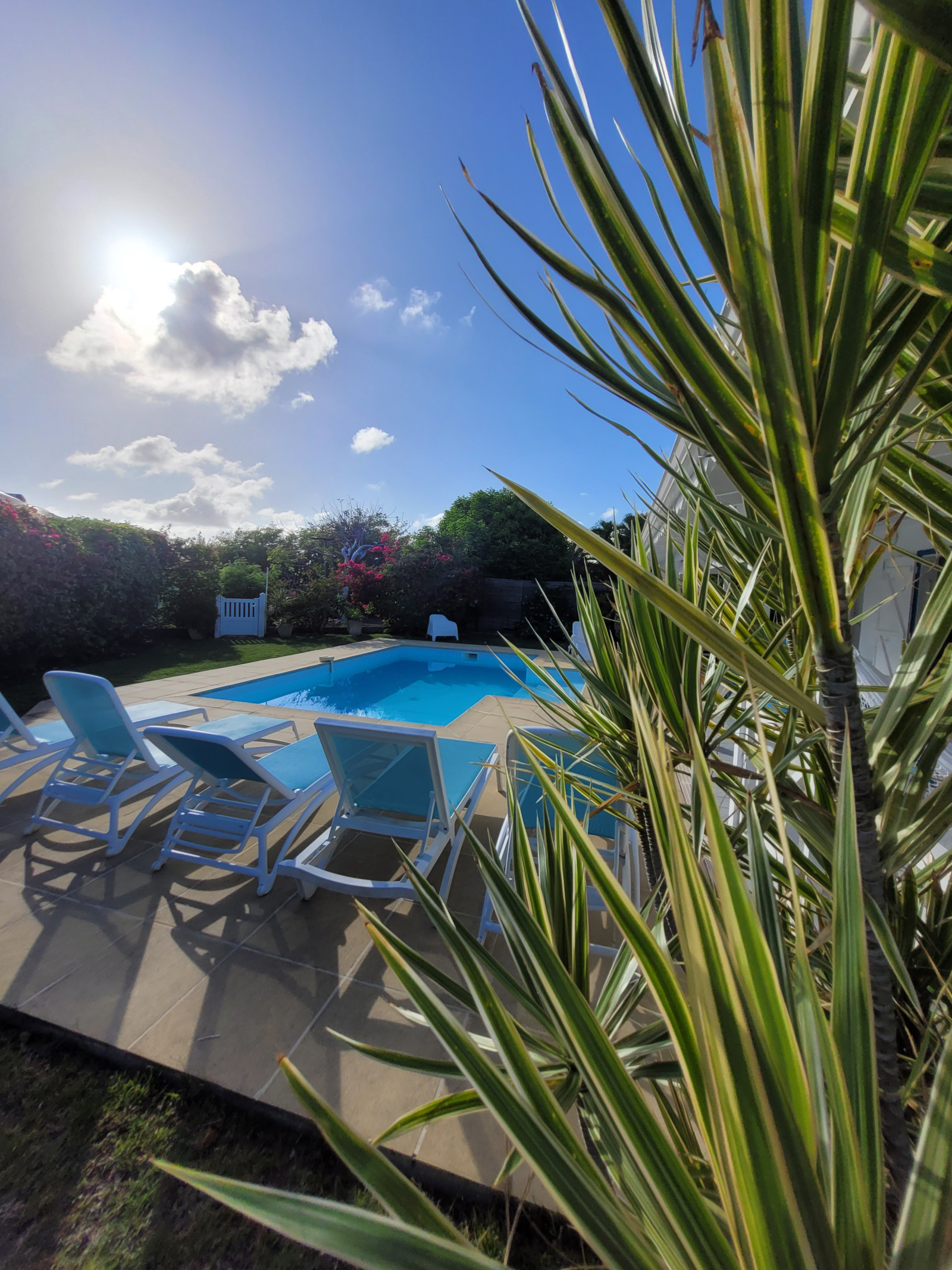Dans lotissement avec accès plage, sur beau terrain arboré de 910m2 avec piscine au sel, venez découvrir cette charmante villa de plain-pied (environ 87m2) composée d'un séjour avec charpente apparente ouvert sur de spacieuses et très agréables terrasses extérieures entièrement couvertes (portant la surface à 185m2), 3 chambres climatisées avec placards, deux salles d'eau avec wc, cuisine aménagéé, cellier, cour intérieure.