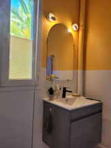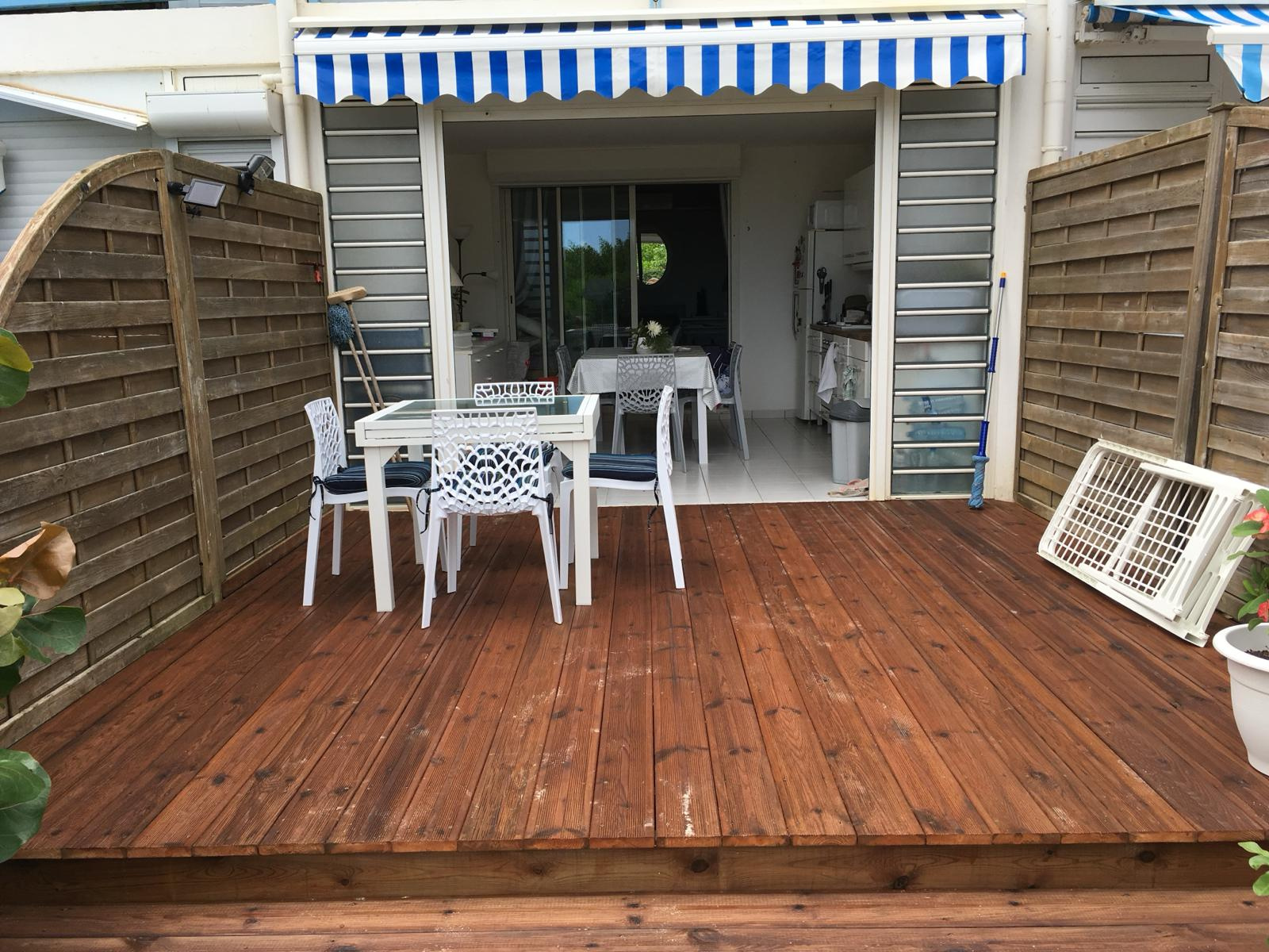 Sur la commune de Sainte-Anne, proche du bourg, venez découvrir ce spacieux studio transformé en T2 et composé d'une pièce principale donnant sur une loggia fermée à l'intérieur de laquelle se trouve la cuisine et l'espace repas , le tout prolongé par un deck donnant sur un petit jardin face à la mer . La chambre est climatisée et se prolonge sur une salle d'eau avec douche à l'italienne et WC.