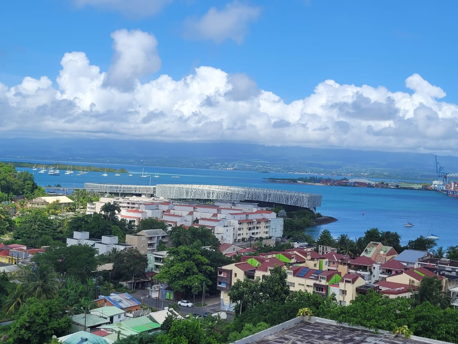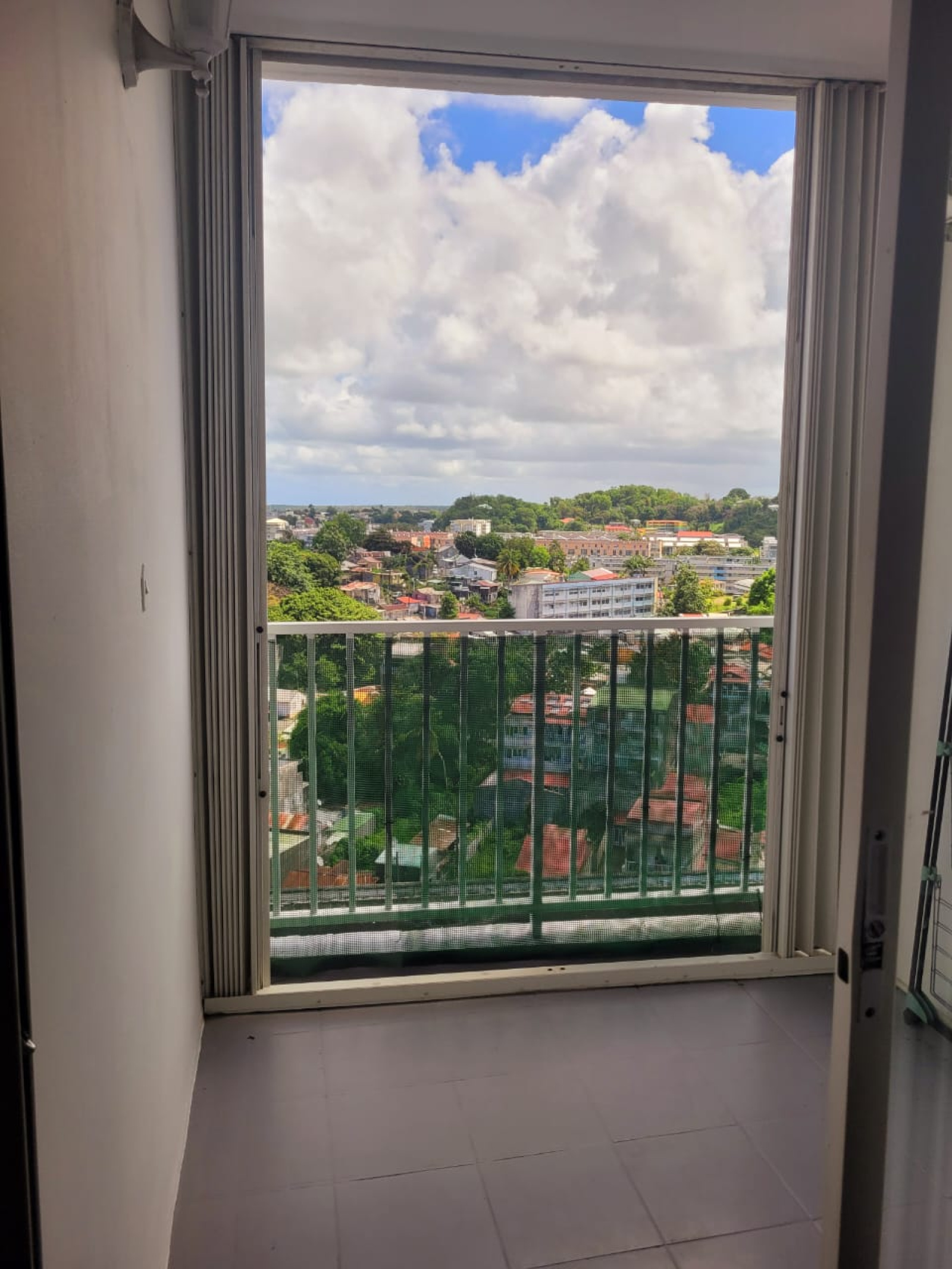 Situé au coeur de Pointe-à-Pitre, dans la tour Massabielle, apppartement T4 comprenant une entrée, une salle à manger - séjour donnant sur 2 terrasses, une spacieuse cuisine, 3 chambres, une salle d'eau, WC.